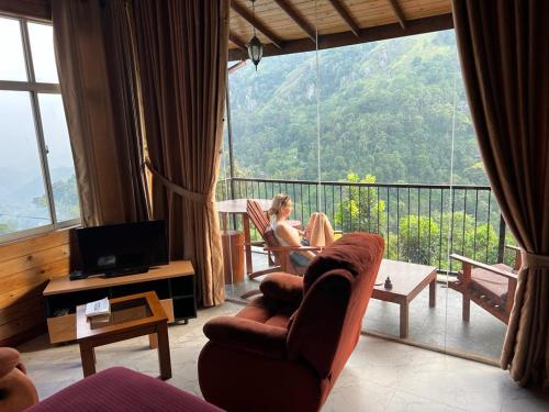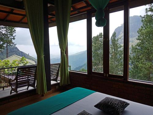 The clean and comfortable wooden cottages at Ella Mount Relax have large glass windows, private bathroom, fan and breathtaking views across the mountains.